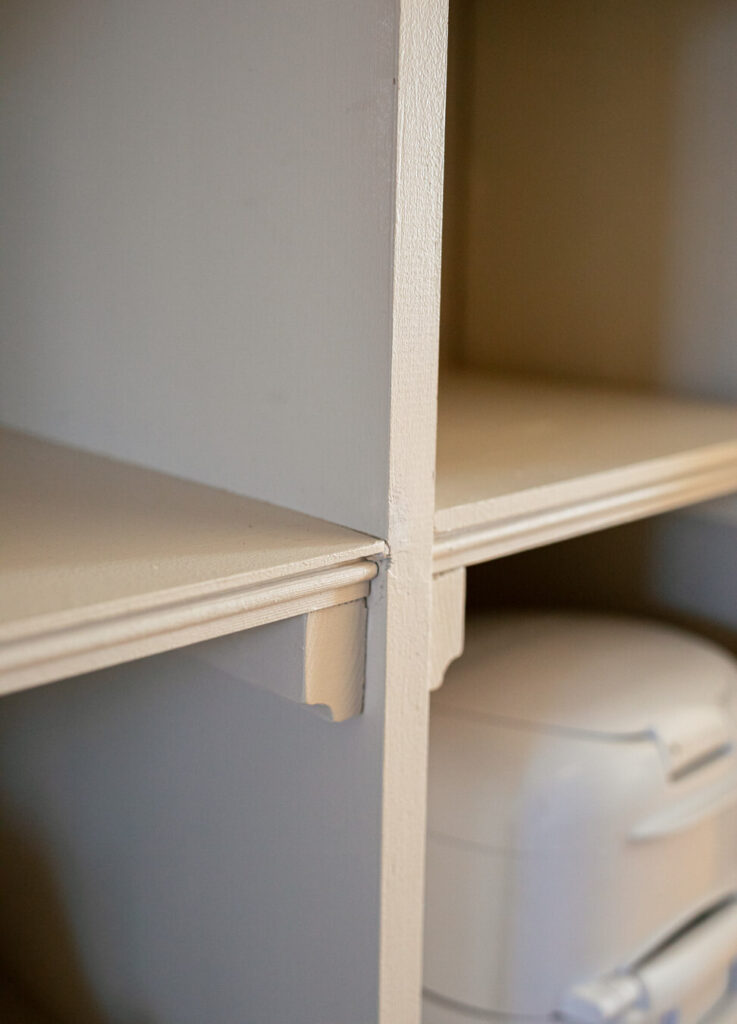 Möbeln är byggd i furu och MDF, med ytskivor i masonitskiva, och har fått en härligt gröngrå kulör från FlüggerEarl Greyish. Fräsningarna ger ett unikt och exklusivt uttryck, vilket gör möbeln både praktisk och elegant – perfekt för både människa och katt.