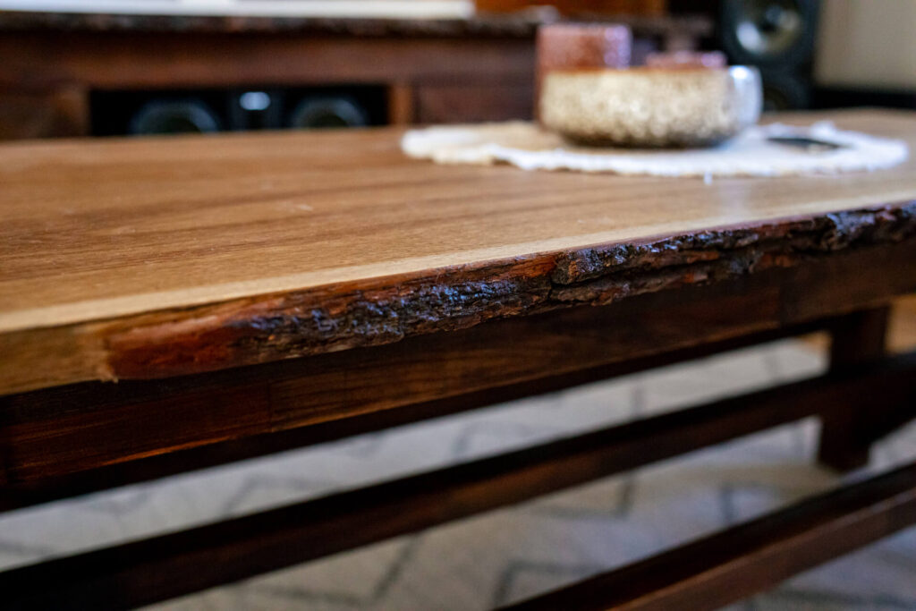 Vi dras ofta till det lite mer levande uttrycket i trä. Naturliga former, synliga ådringar och små skavanker får gärna vara en del av helheten – detaljer som ger varje möbel sin egen karaktär, utan att kompromissa med konstruktion eller kvalitet.